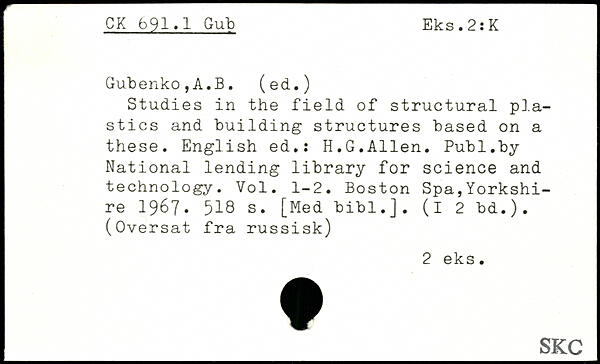 Studies in the field of structural plastics and building structures based on a these. English ed.: H.G.Allen.