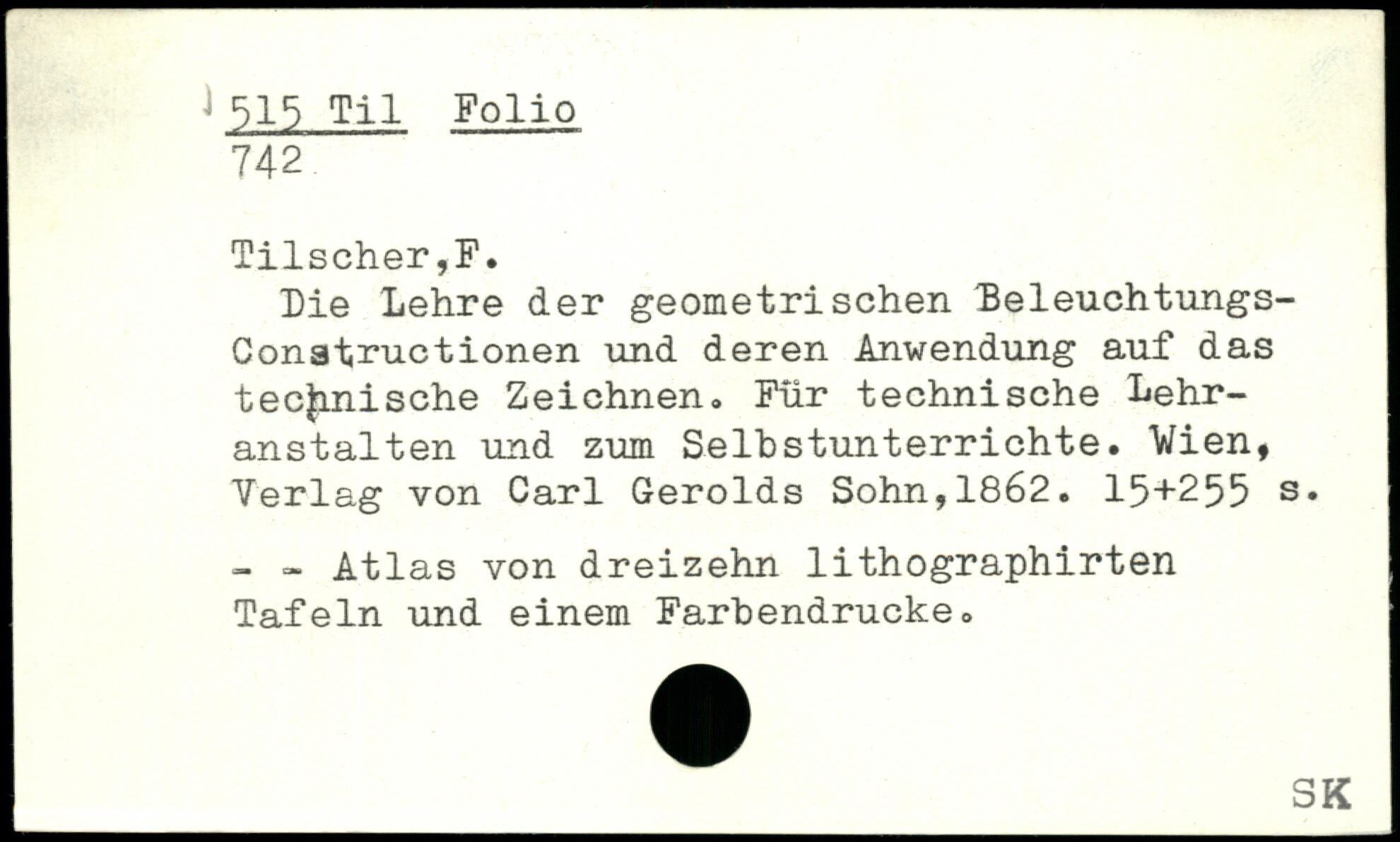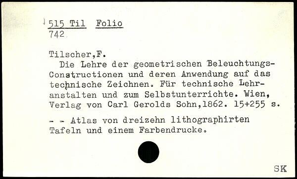 Die Lehre der geometrischen Leleuchtungs-Conatructionen und deren Anwendung auf das j technische Zeichnen. Für technische Lehranstalten und zum Selbstunterrichte. Vien, j Verlag von Carl Gerolds Sohn,1862.