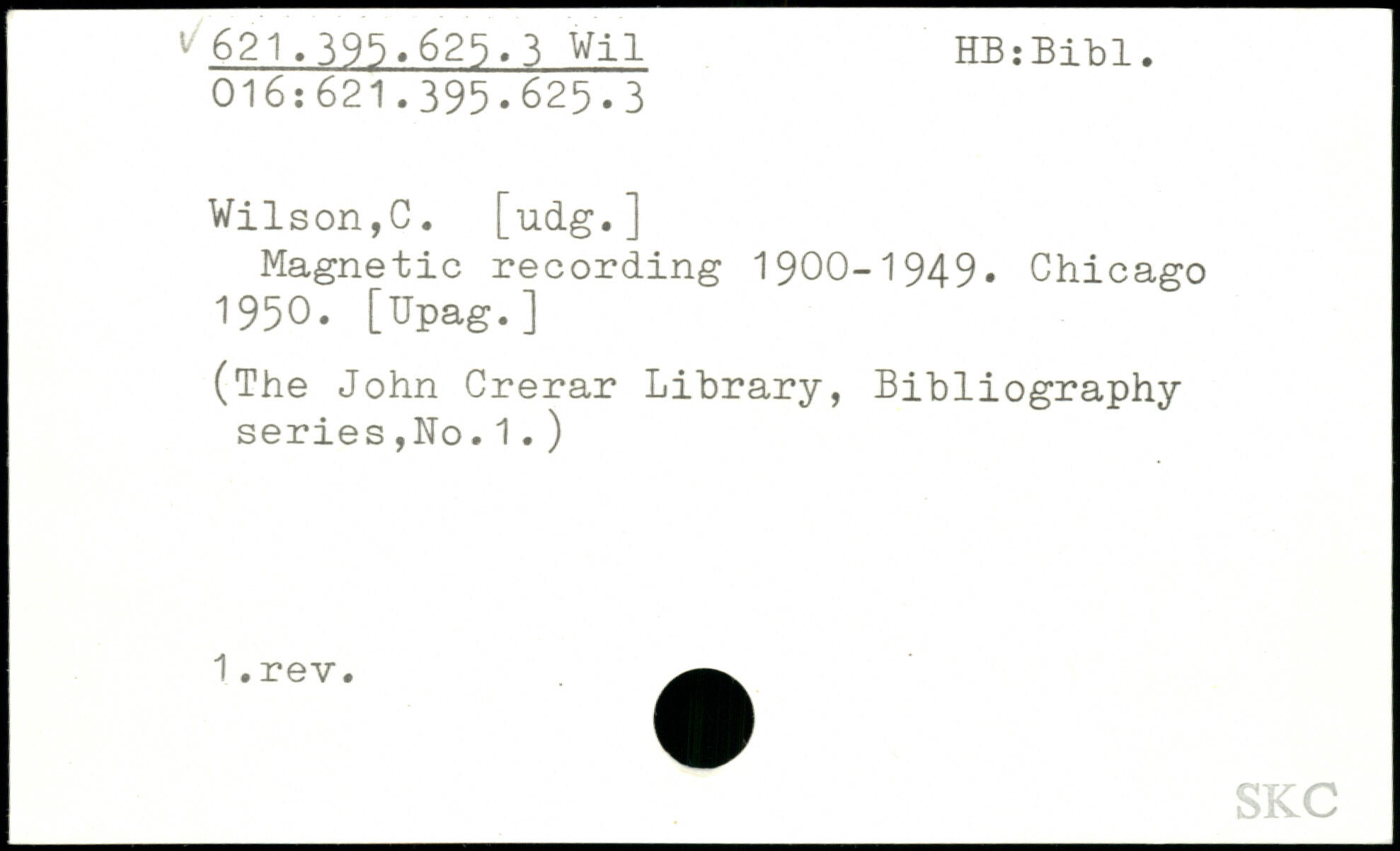 Wilson,C. [udg.] Magnetic recording 1900-1949.