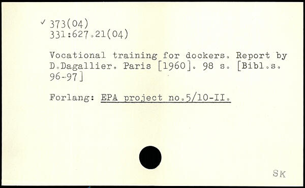 Vocational training for dockers, Report by D0Ragallier. Paris