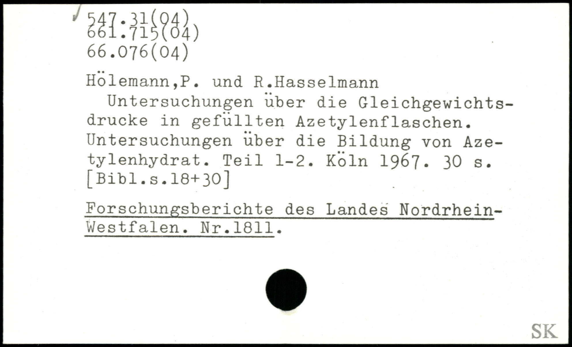 Untersuchungen über die Gleichgewichtsdrucke in gefüllten Azetylenflaschen. Untersuchungen über die Bildung von Azetylenhydrat. Teil 1-2.