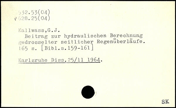 Beitrag zur hydraulischen Berechnung gedrosselter seitlicher Regenuberlaufe.