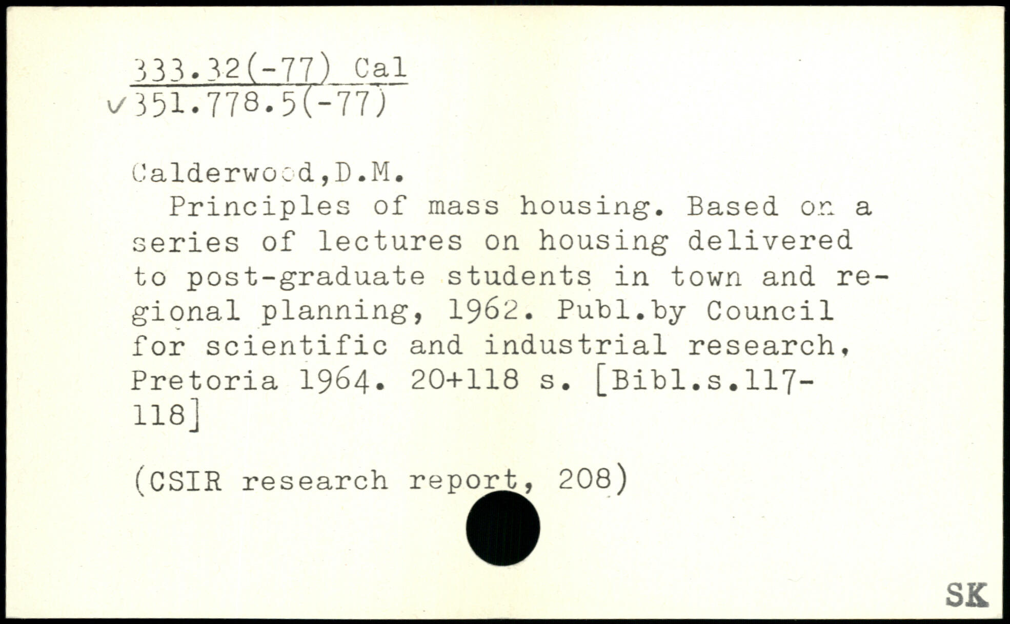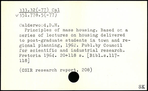 Principles of mass housing. Based on a series of lectures on housing delivered to post-graduate students in town and regional planning, 1962.