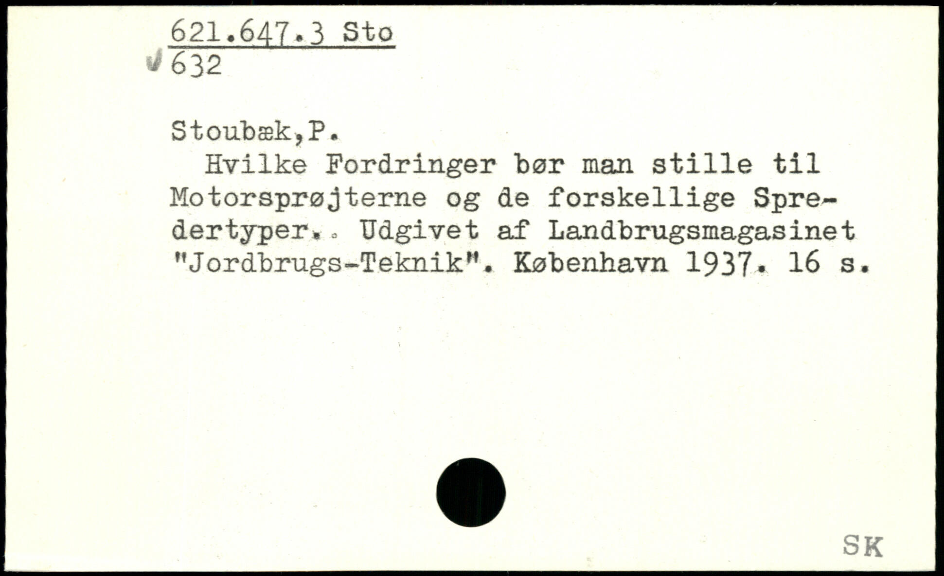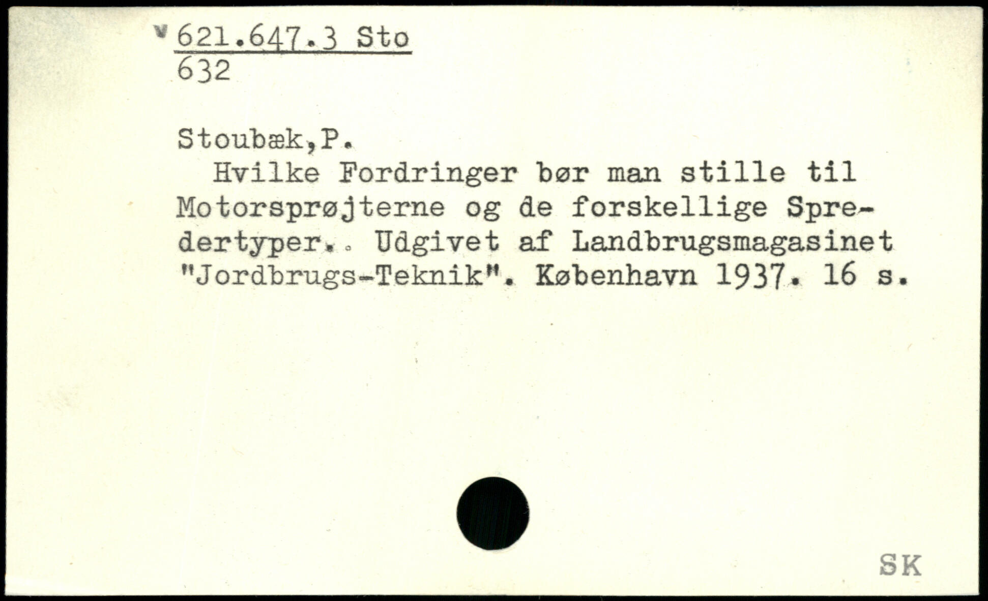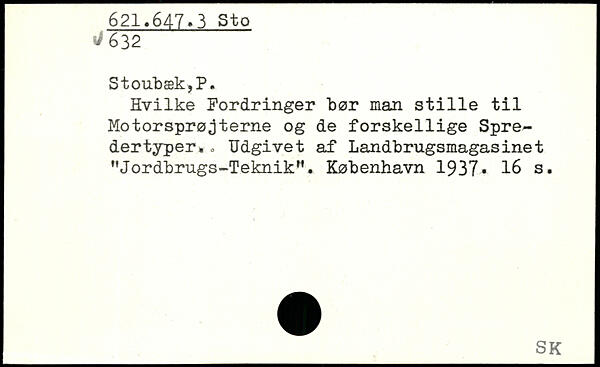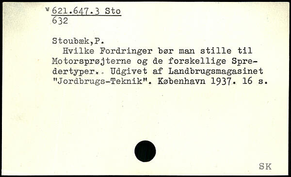 Hvilke Fordringer bør man stille til Motorsprøjterne og de forskellige Spredertyper. o Udgivet af Landbrugsmagasinet "Jordbrugs-Teknik”.
