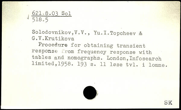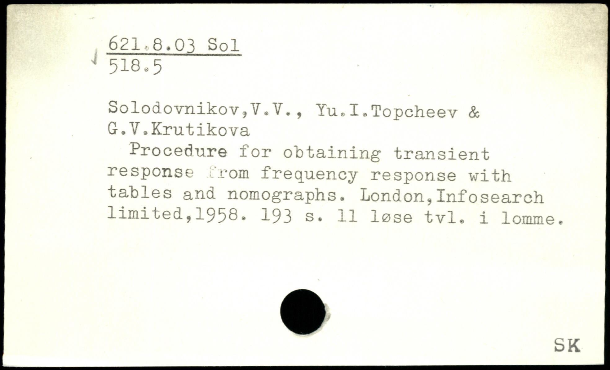Solodovnikov,V.V., Yu.I.Topcheev & G.Y.Krutikova Procedure for obtaining transient response from frequency response with tables and nomographs.