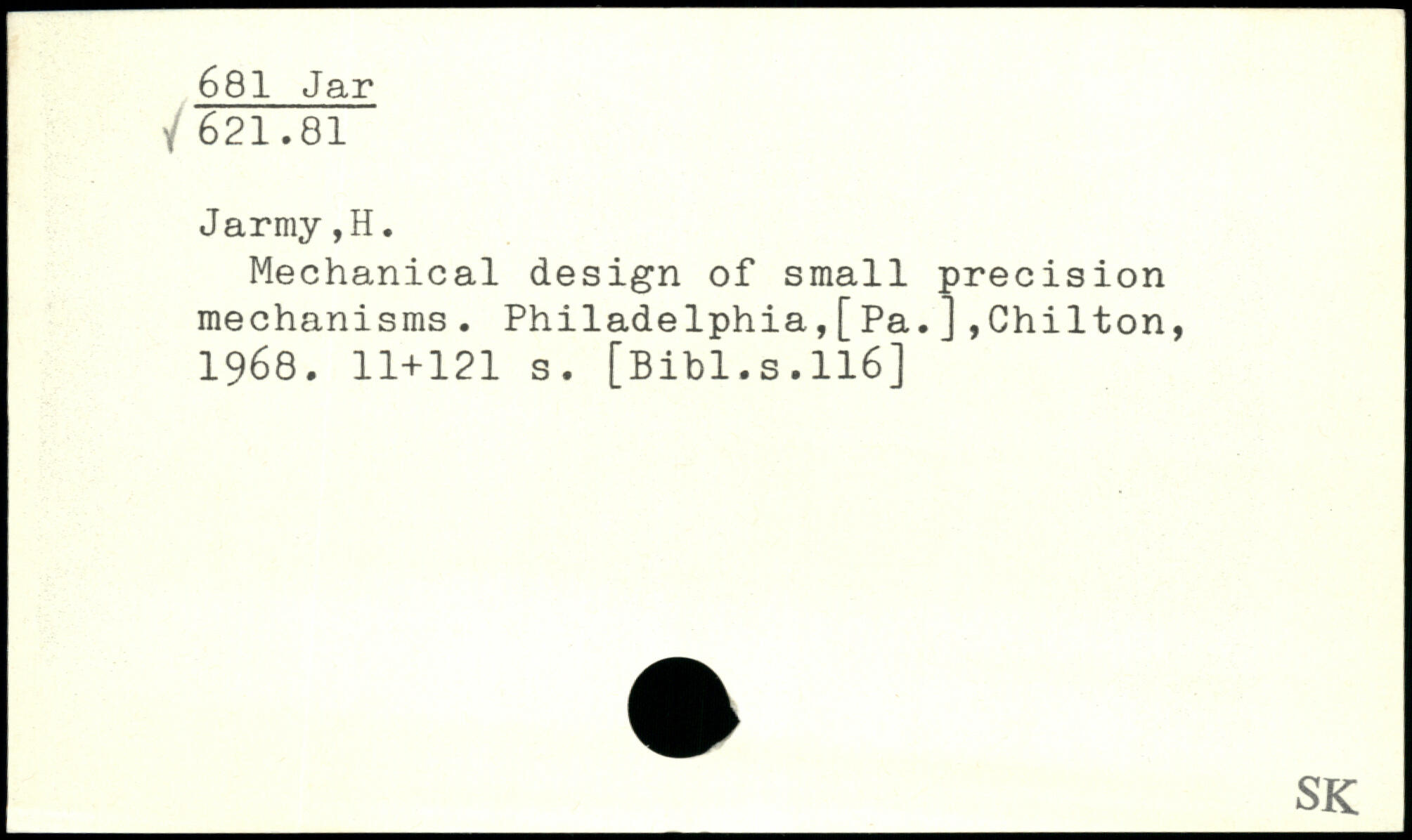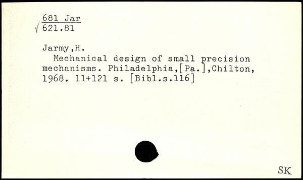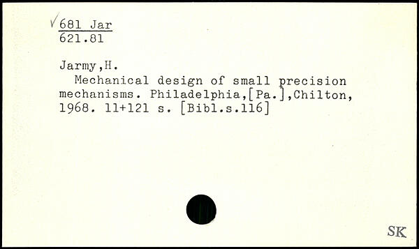 Mechanical design of small precision mechanisms. Philadelphia,[Pa.],Chilton, 1968.