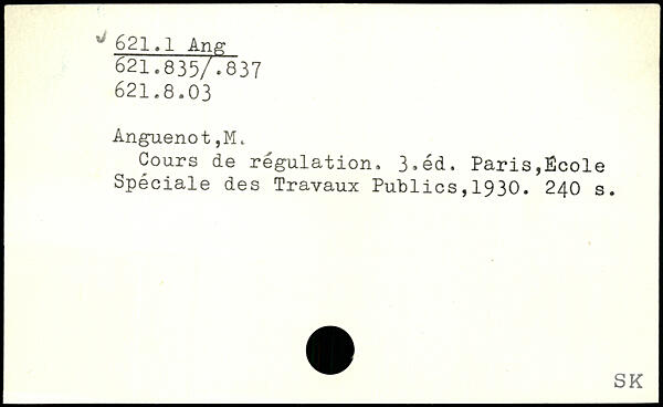 Cours de régulation, 3.éd. Paris,Ecole Spéciale des Travaux Publics,1930.