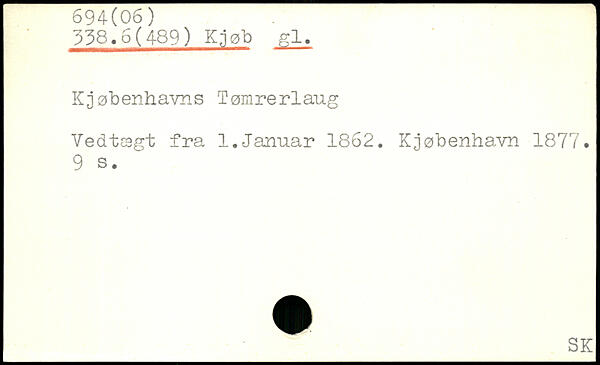 Kjøbenhavns Tømrerlaug Vedtægt fra 1.Januar 1862. Kjøbenhavn 1877.