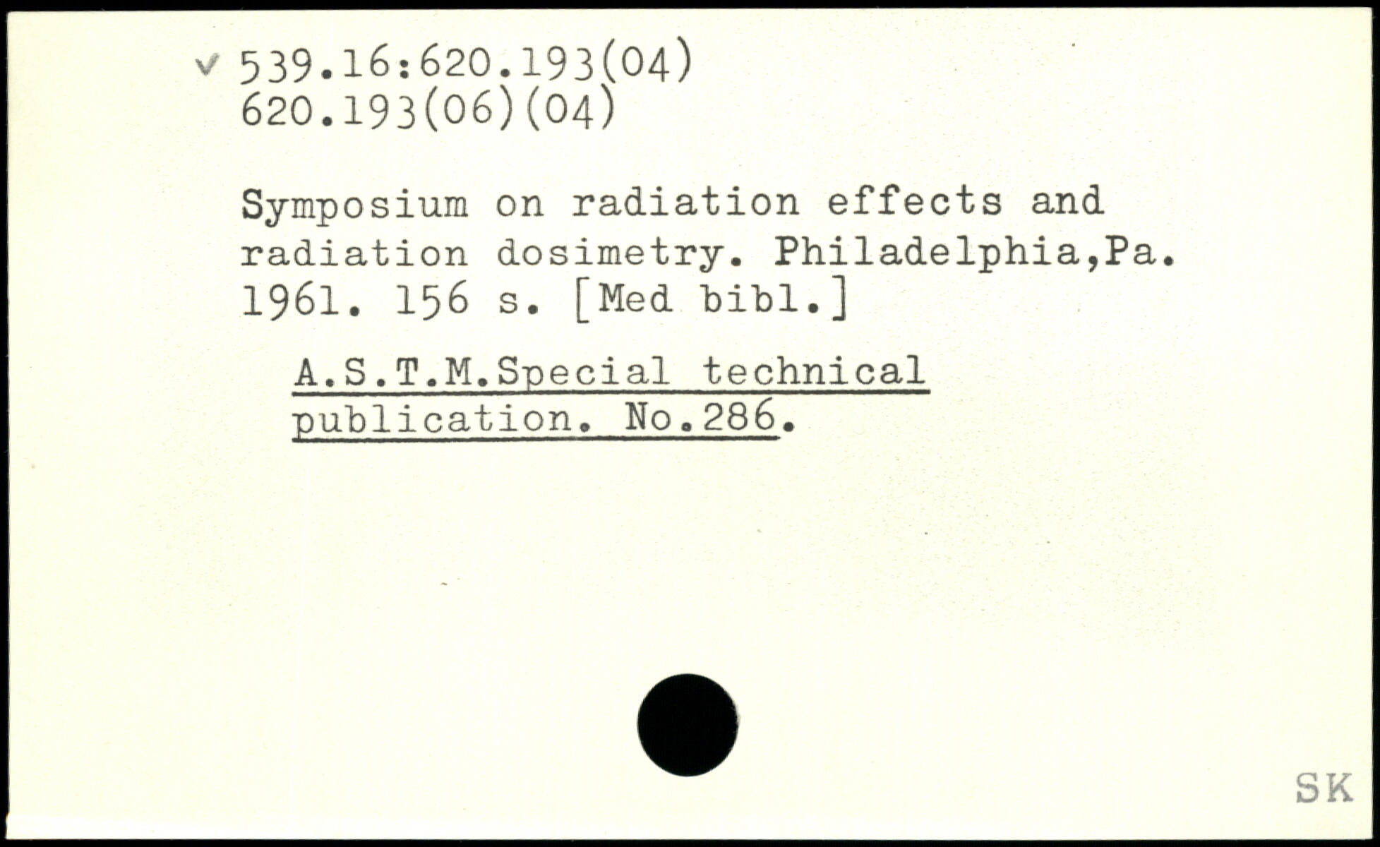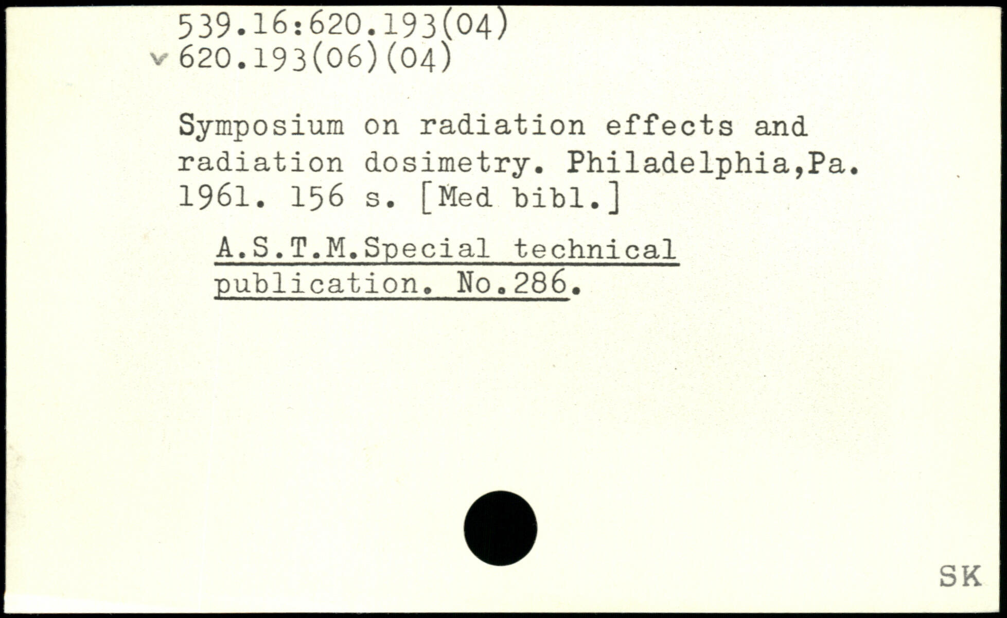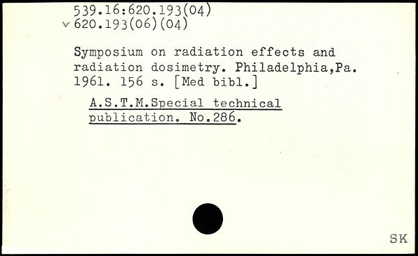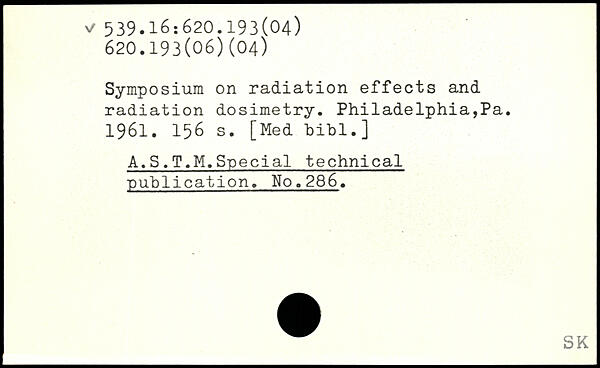 Symposium on radiation effects and radiation dosimetry. Philadelphia,Pa. 1961.