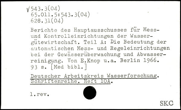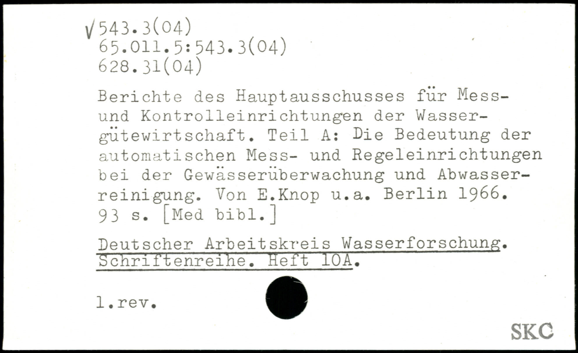 Berichte des Hauptausschusses für Mess-und Kontrolleinrichtungen der Wassergütewirtschaft. Teil A: Die Bedeutung der automatischen Mess- und Regeleinrichtungen bei der Gewüsseruberwachung und Abwasserreinigung. Von E.Knop u.a.