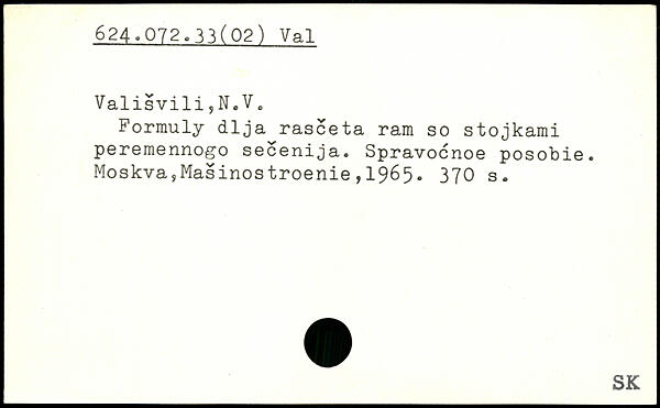 Formuly dija rasceta rara so stojkami peremennogo secenija. Spravocnoe posobie.