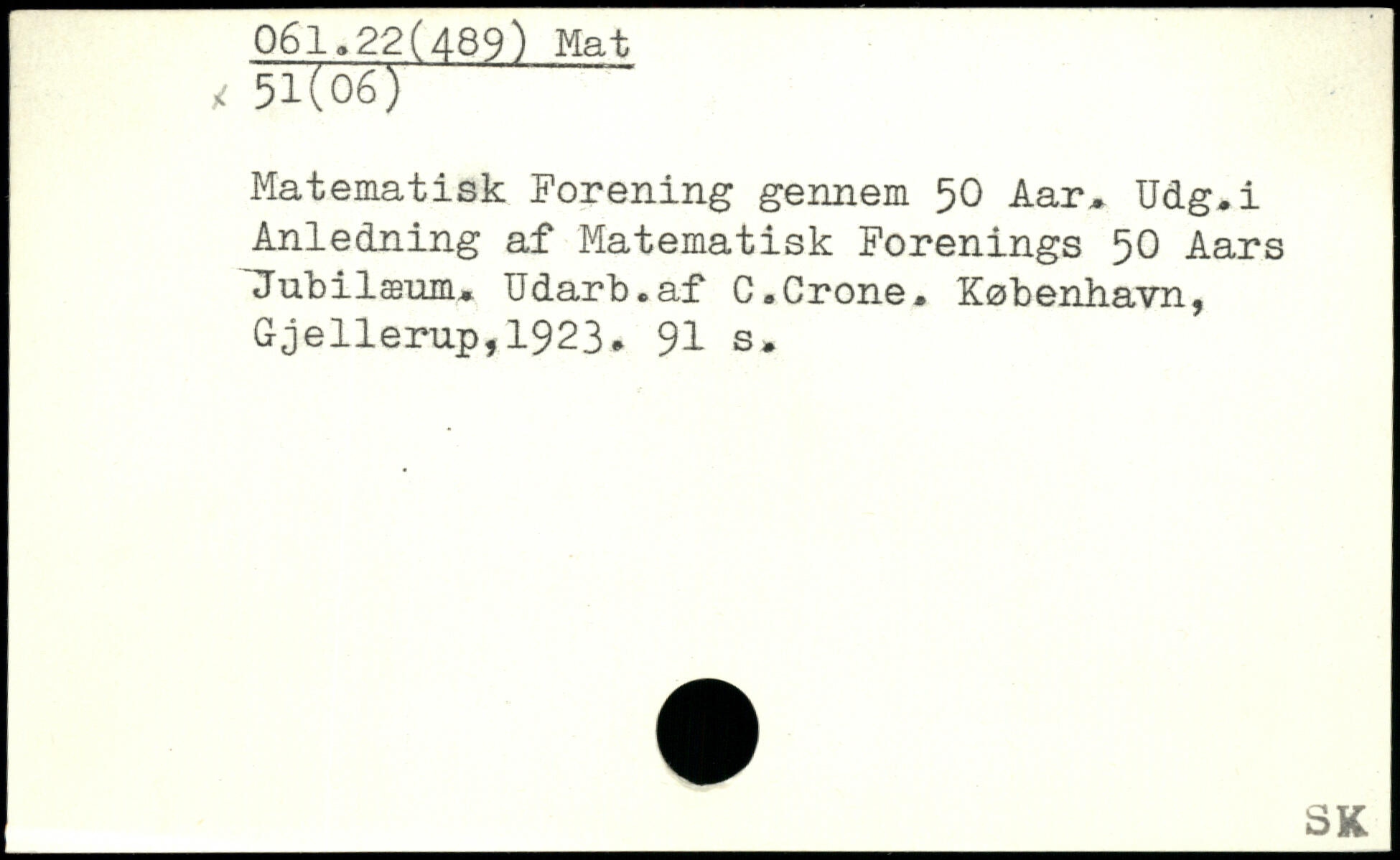 Matematisk Forening gennem 50 Aar. Udg.i Anledning af Matematisk Forenings 50 Aars Jubilæum, Udarb.af C.Crone.