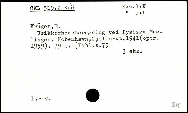 Usikkerhedsberegning ved fysiske Maa-linger. KøbenhavnfGjellerupf1941(optr. 1959).