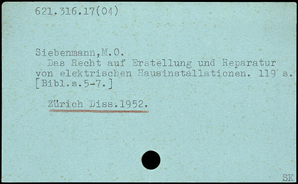 Sieb enmann,M.0. Las Recht auf Erstellung und Reparatur von elektrischen Hausinstallationen.