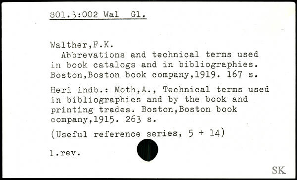 Abbrevations and technical terms used in book catalogs and in bibliographies.
