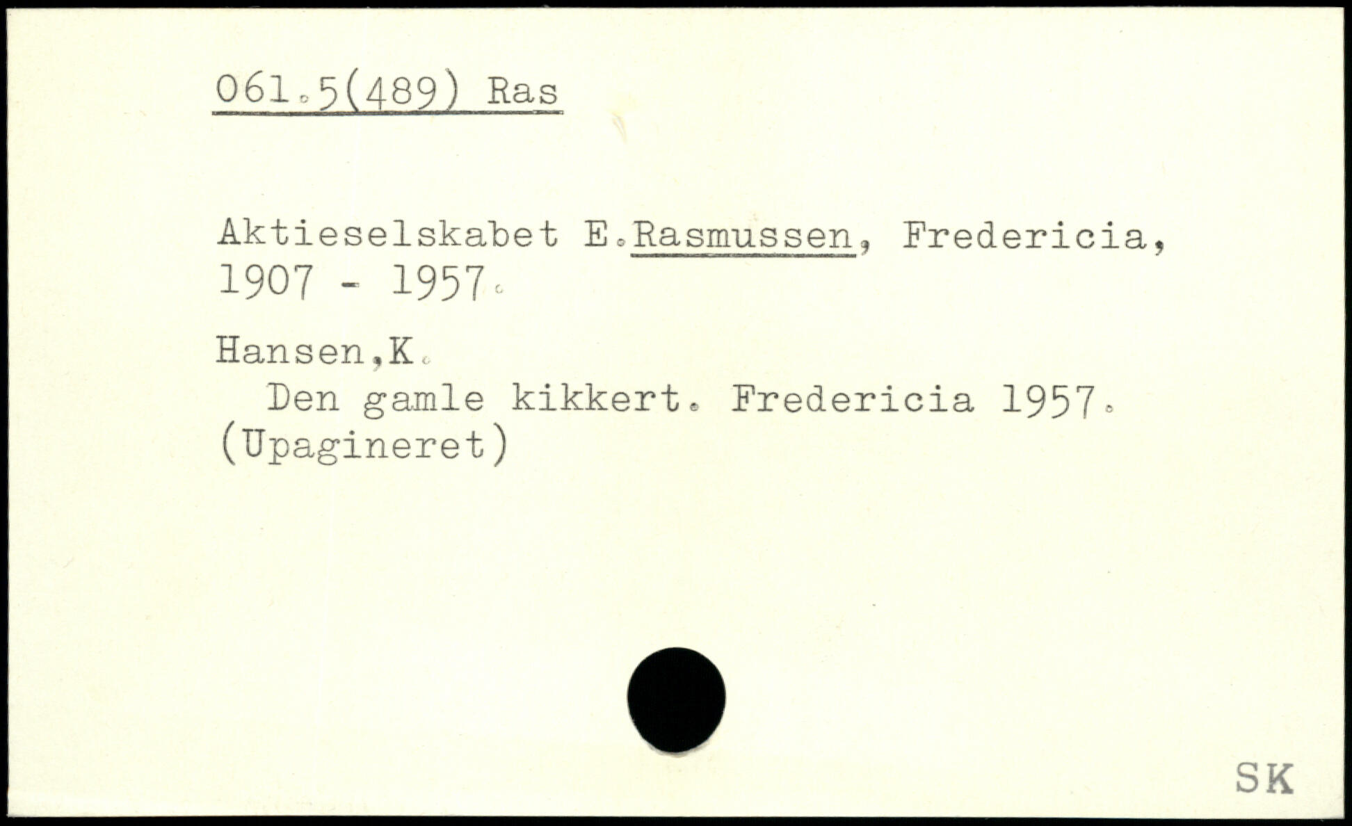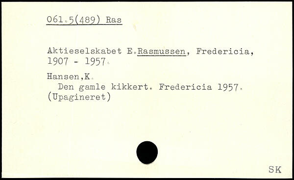 Aktieselskabet E,Rasmussen, Fredericia, 1907 - 1957c Hansen,K, Den gamle kikkert, Fredericia 1957, (Upagineret)