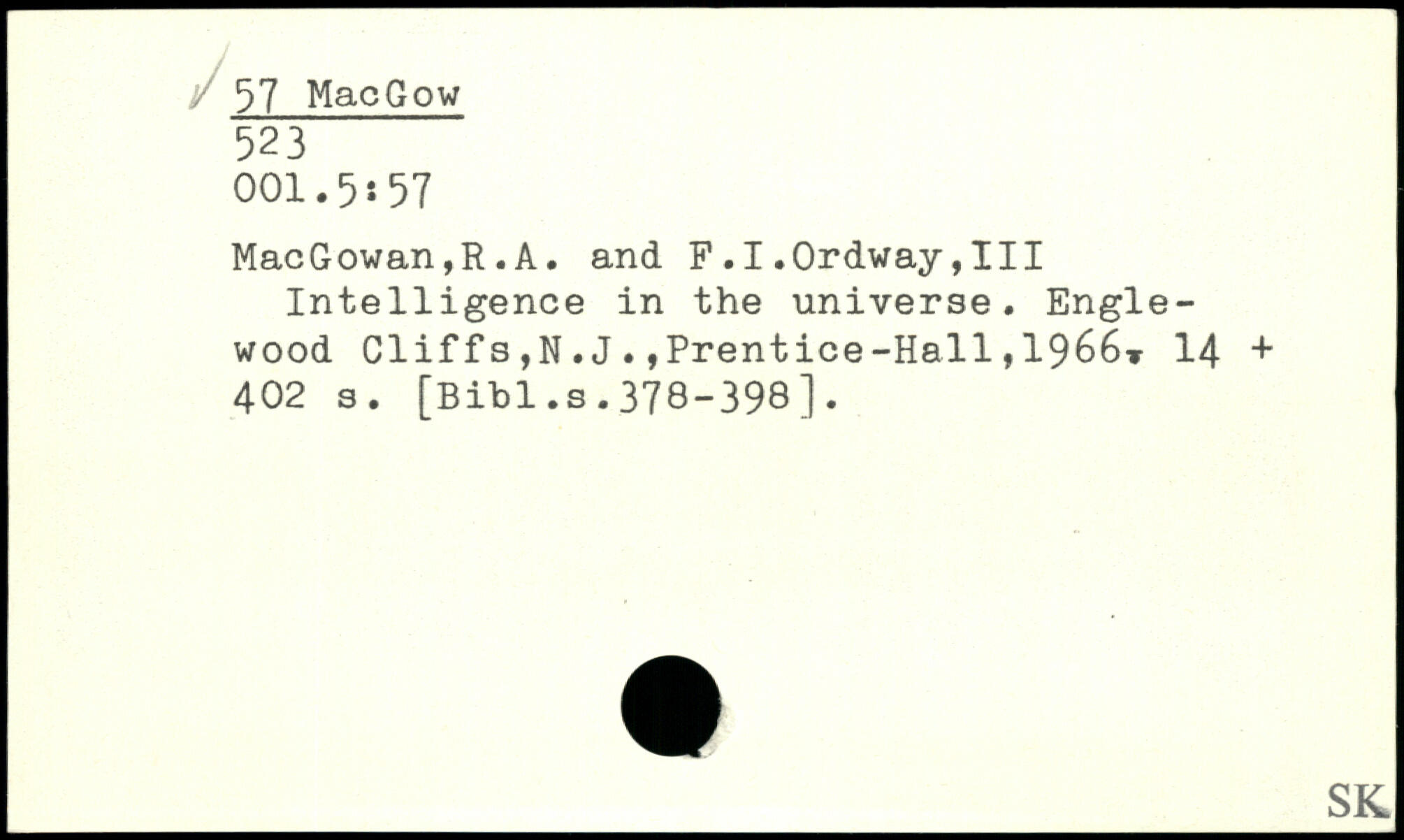 MacGowan,R.A. and F.1.Ordway,111 Intelligence in the universe.