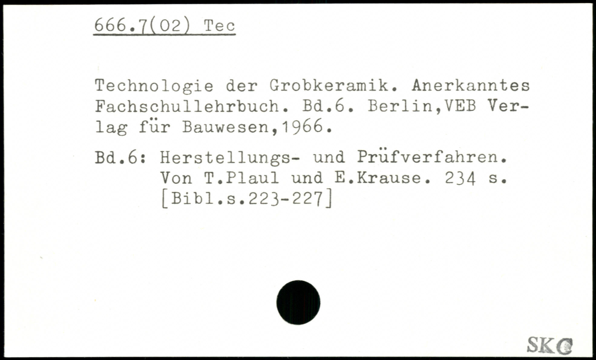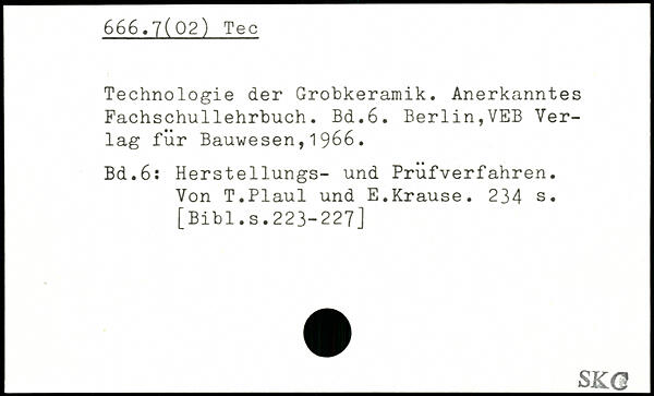 Technologie der Grobkeramik. Anerkanntes Fachschullehrbuch.
