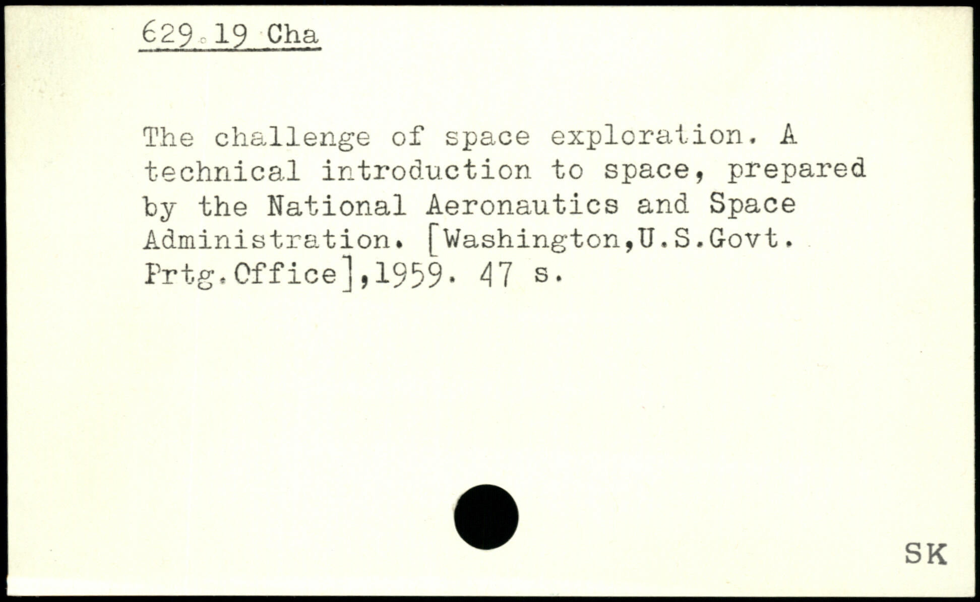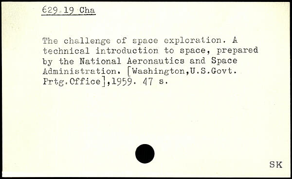 The challenge of space exploration. A technical introduction to space, prepared by the National Aeronautics and Space Administration. [Washington,U.S.Govt. Prtg.Office],1959.