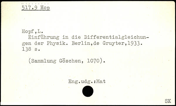 Einführung in die Differentialgleichun-gen der Physik. Berlin,de Gruyter,1933.