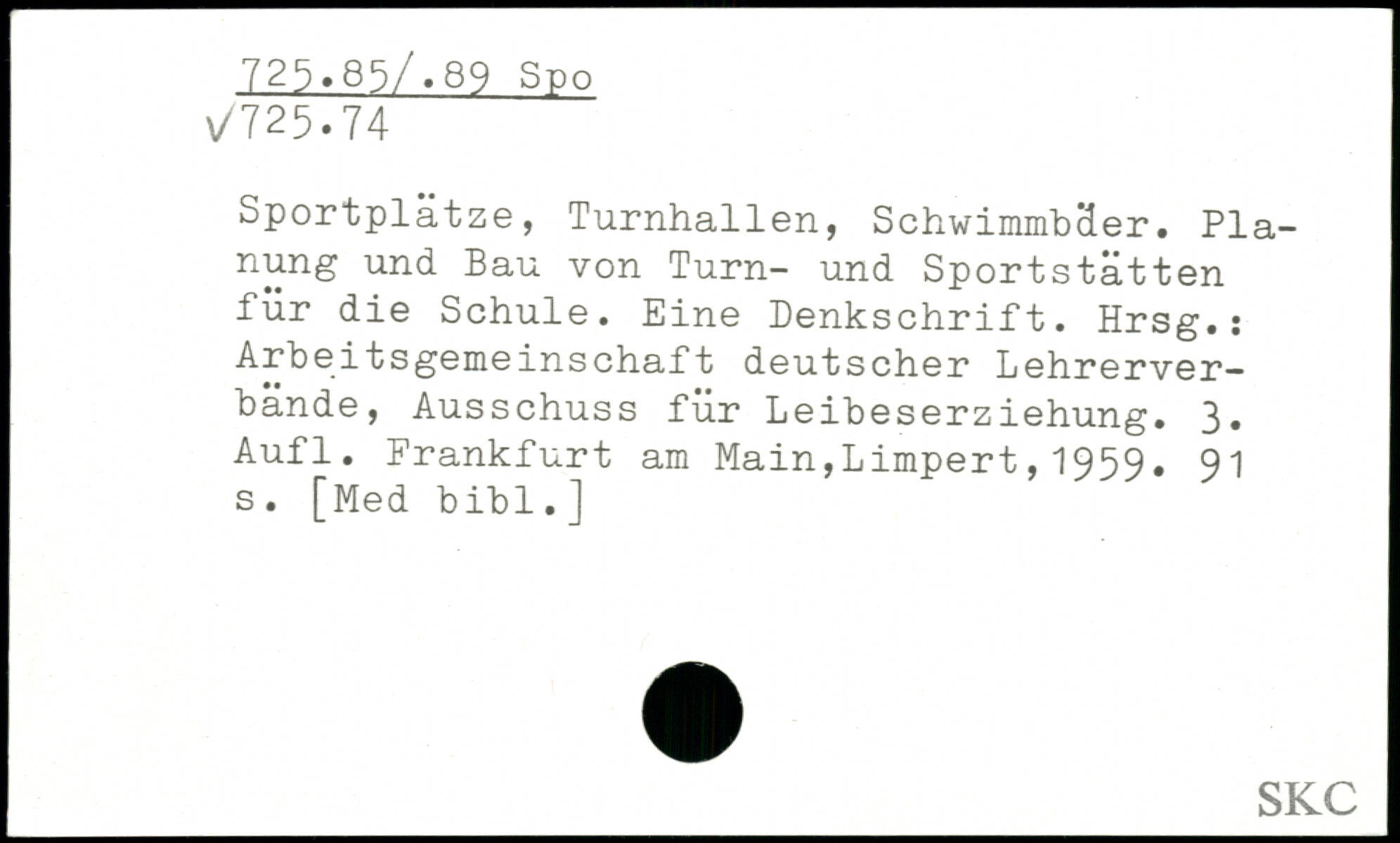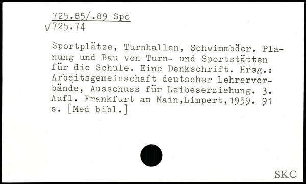 Sportplätze, Turnhallen, Schwimmt,cler. Pla-nung und Bau von Turn- und Sportstätten für die Schule. Eine Denkschrift. Hrsg.: Arbeitsgemeinschaft deutscher Lehrerverbände, Ausschuss für Leibeserziehung. 3, Aufl.