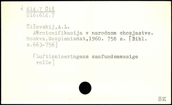 Cizevskij,As L. A^roionifikacija v narodnom chozjastve. Moskva?Gozplanizdat,1960o