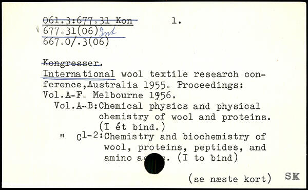 Kongresser.. Interimtional wool textile research conference ,Australia 1955. Proceedings: Vol.A~Fu Melbourne 1956. Vol.A-B:Chemical physics and physical chemistry of wool and proteins, (i et hind.) .i q1— 2: Chemistry and biochemistry of wool, proteins, peptides, and amino a^k. (i to bind)