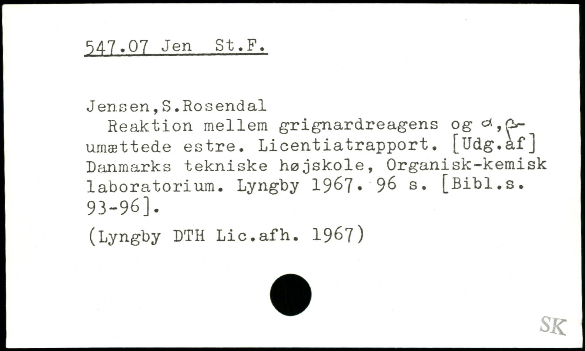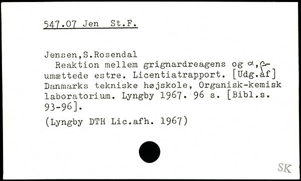 Jensen,S.Rosendal Reaktion mellem grignardreagens og umættede estre. Licentiatrapport.