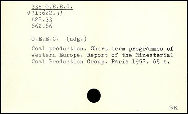 Coal production. Short-term programmes of Western Europe, Report of the Minesterial Coal Production Group.