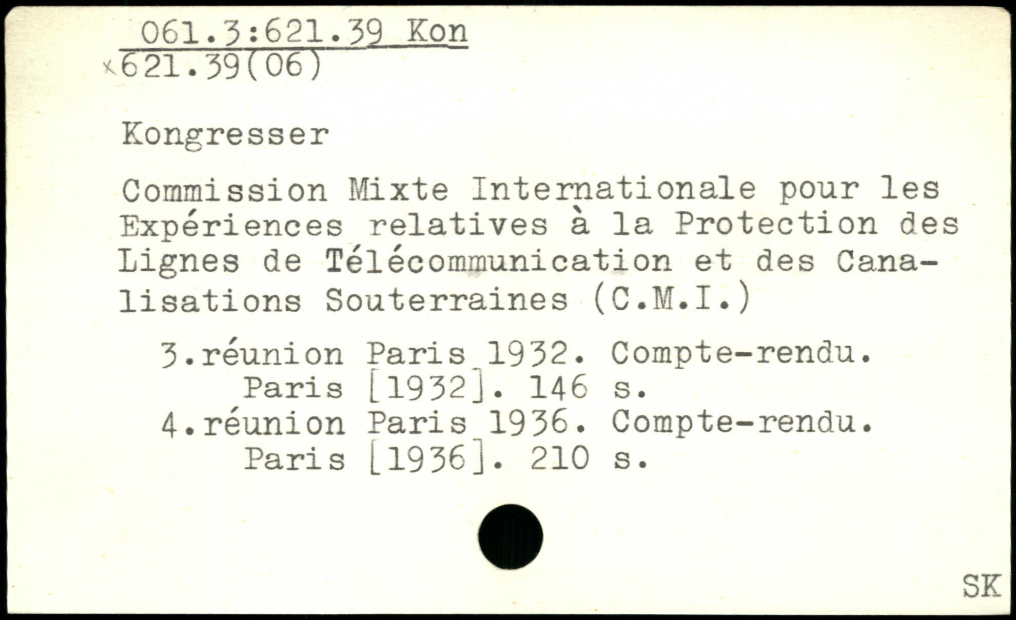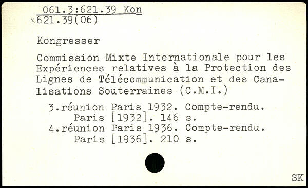 Commission Mixte Internationale pour les Expériences relatives à la Protection des Lignes de Télécommunication et des Canalisations Souterraines (C.M.I.) 3. réunion