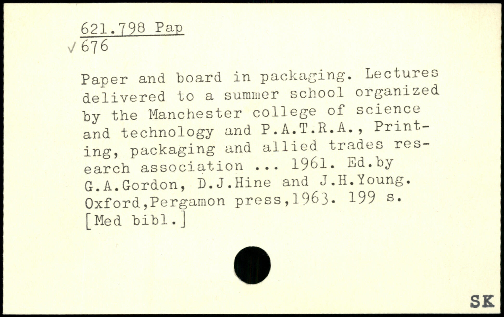 Paper and board in packaging. Lectures delivered to a summer school organized by the Manchester college of science and technology and P.A.T.R.A., Printing, packaging and allied trades research association ... 1961. Ed.by G.A.Gordon, D.J.Hine and J.H.Young.