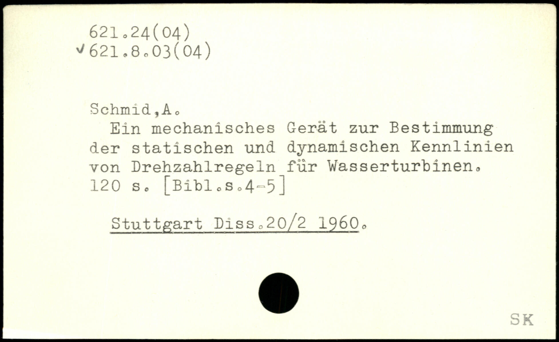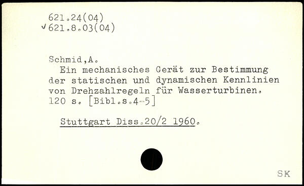 Schmid., A o Ein mechanisches Gerät zur Bestimmung der statischen und dynamischen Kennlinien von Drehzahlregeln für Wasserturbinen