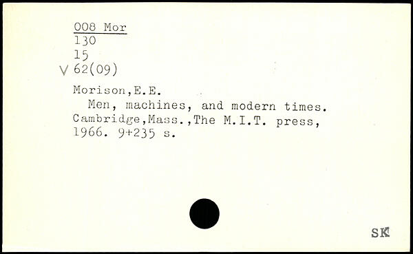 Men, machines, and modern times. Cambridge,Mass.,The M.I.T. press, 1966.