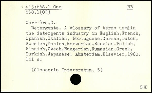 Detergents. A glossary of terms used in the detergents industry in English,French, Spanish,Italian, Portuguese,German,Dutch, Swedish,Danish, Norwegian, Russi an, Polish^, Finnish,Czech,Hungarian,Rumanian,Greek, Turkish,Japanese.