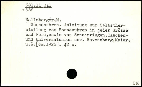 Sonnenuhren. Anleitung zur Selbstherstellung von Sonnenuhren in jeder Grösse und Form,sowie von Sonnenringen,Taschen-und Universaluhren usw. Ravensburg,Maier, u.ä.[ca.1922].