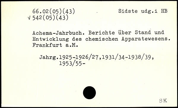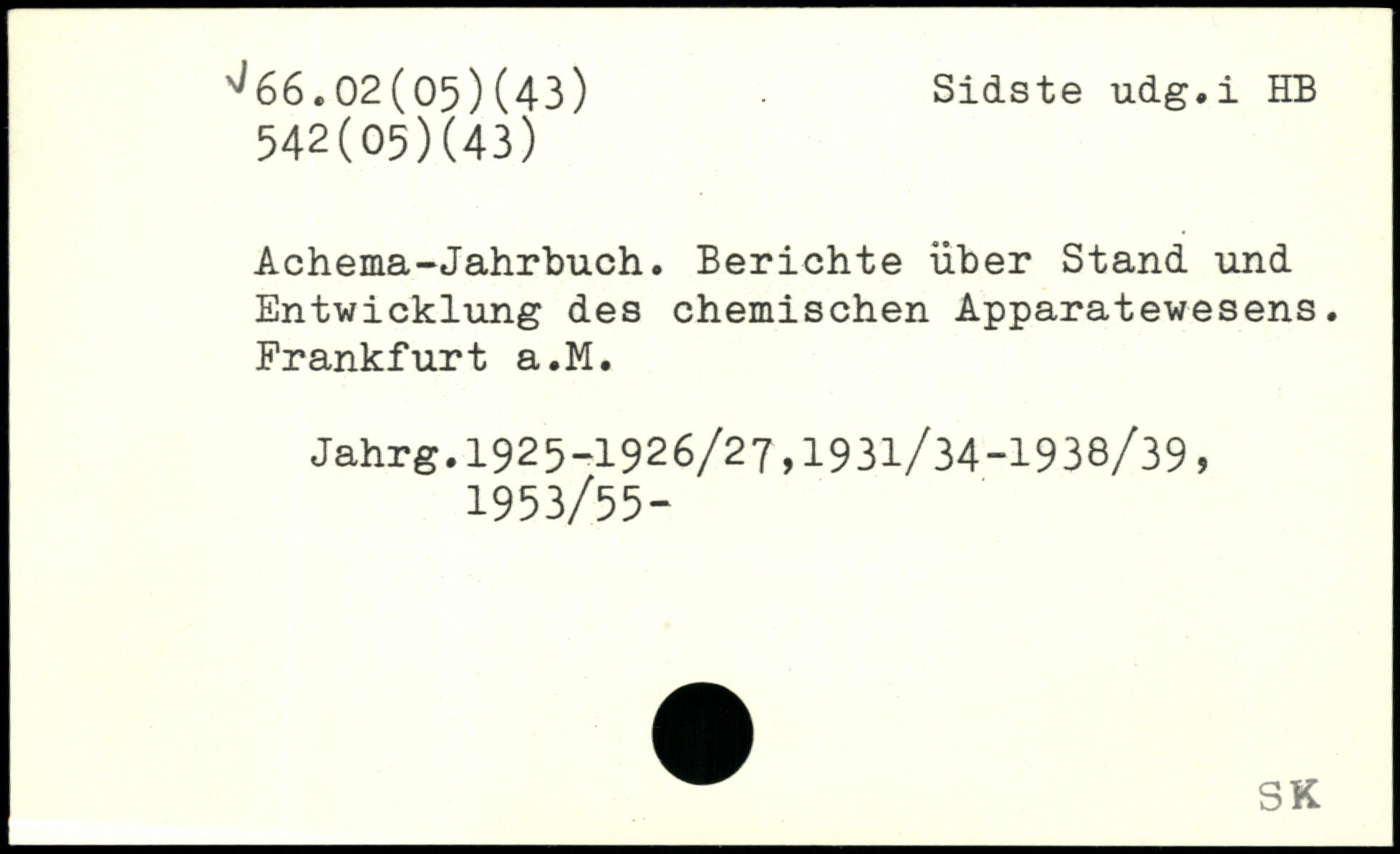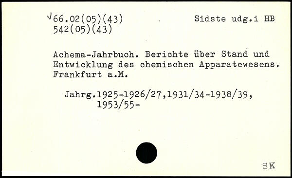 Achema-Jahrbuch. Berichte über Stand und Entwicklung des chemischen Apparatewesens. Frankfurt a.M. Jahrg.1925-1926/27,1931/34-1938/39, 1953/55-