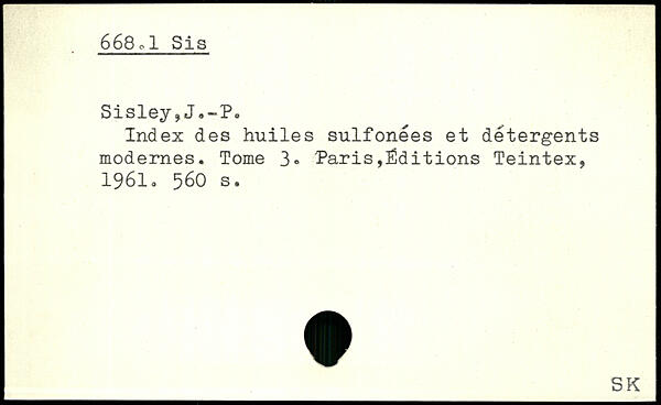 Index des huiles sulfonées et détergents { modernes. Tome 3, Paris,Éditions Teintex, 1961.