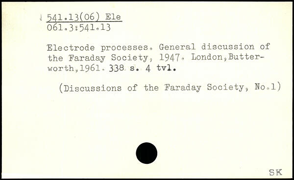 Electrode processes. General discussion of the Faraday Society? 1947- London,Butter-worthÿ1961