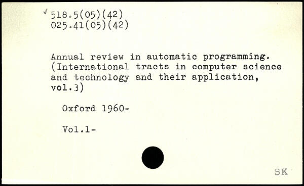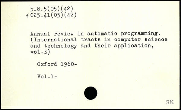 Annual review in automatic programming, (international tracts in computer science and technology and their application