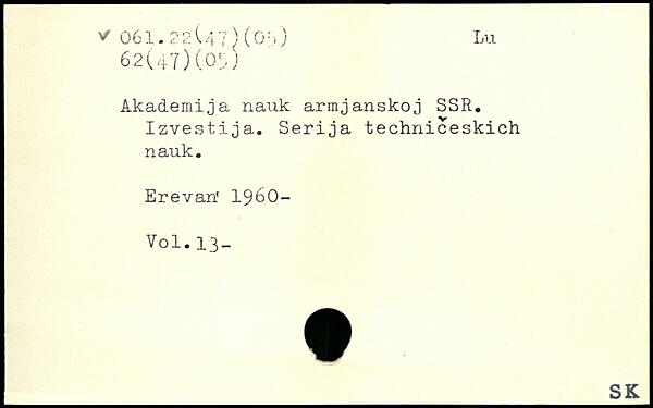 Akademija nauk armjanskoj SSR. Izvestija. Serija techniceskich nauk. Erevan. 1960-V0I.13-