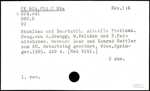 Stahlbau und Baustatik. Aktuelle Probleme. Hrsg;.von R.Grengg, W.Pelikan und F.P.ei-nitzhuber. Hermann Beer und Konrad Sattler zum 60. Geburtstag gewidmet.