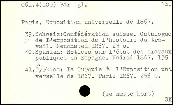 Paris. Exposition universelle de 1867. 39.Schweiz:Confédération suisse. Catalogue £' de exposition de 1‘histoire du travail. ïleiichatel 1867.