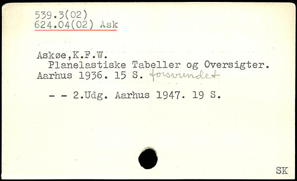 Planelastiske Tabeller og Oversigter.