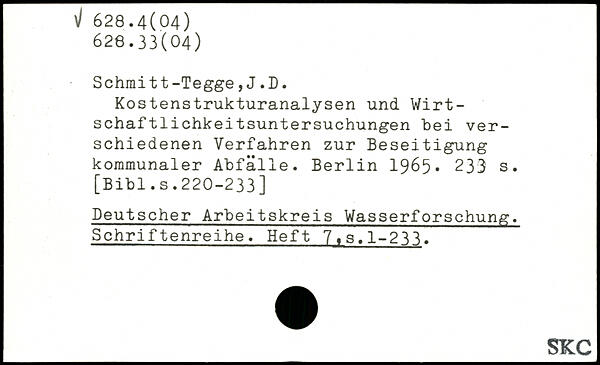 Kostenstrukturanalysen und Wirtschaf tlichkeitsuntersuchungen hei verschiedenen Verfahren zur Beseitigung kommunaler Abfälle.