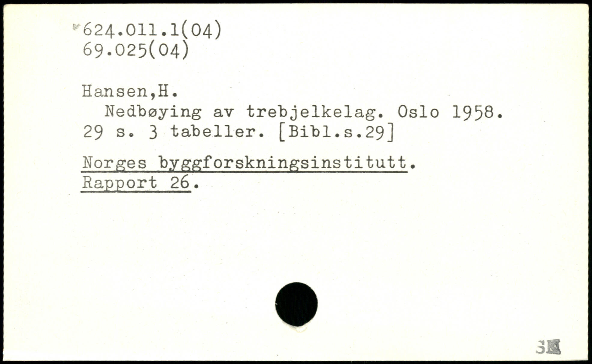 Nedbøying av tretjelkelag. Oslo 1958