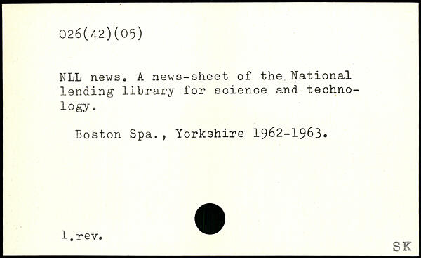 NLL news. A news-sheet of the National lending library for science and technology. Boston Spa., Yorkshire 1962-