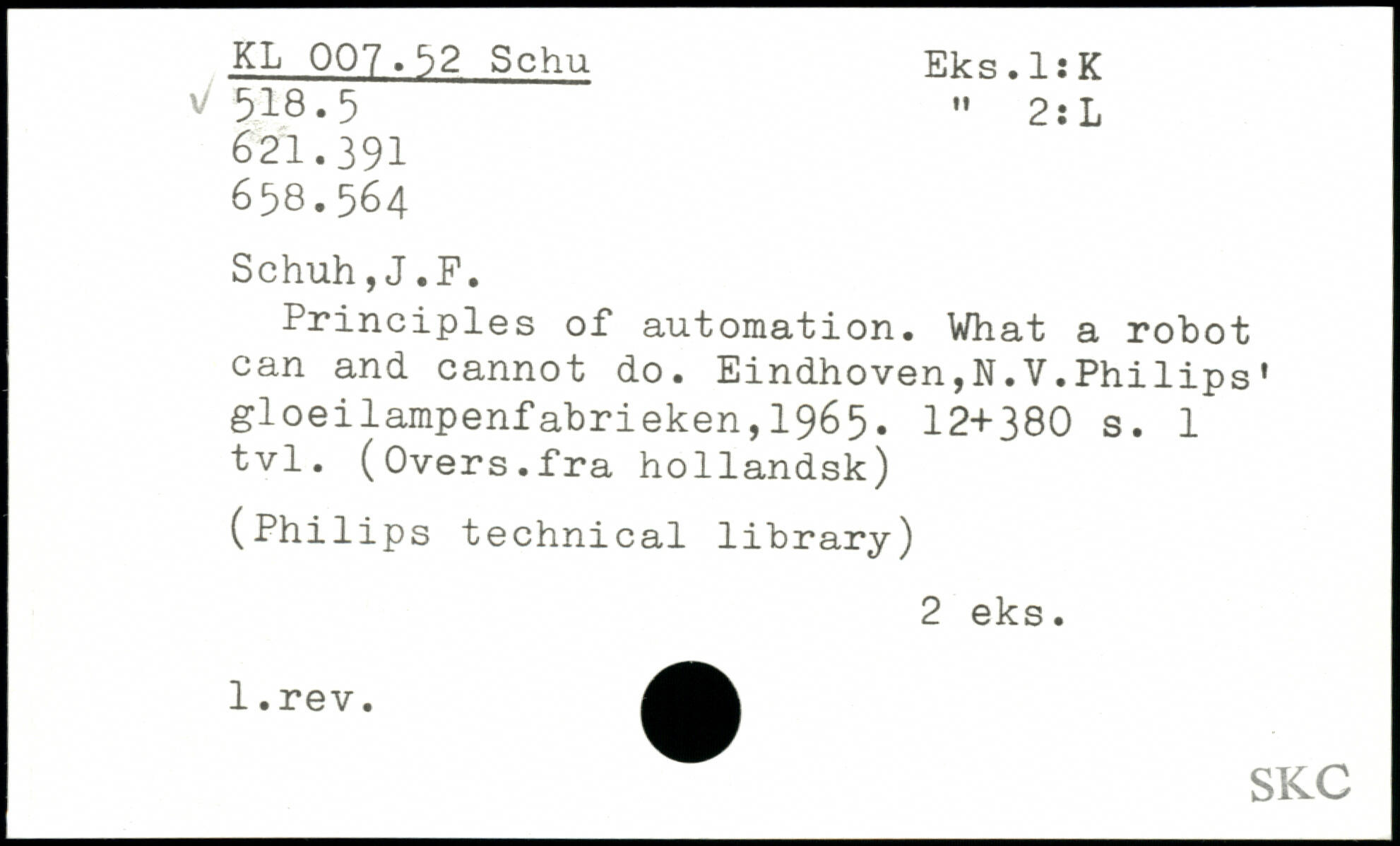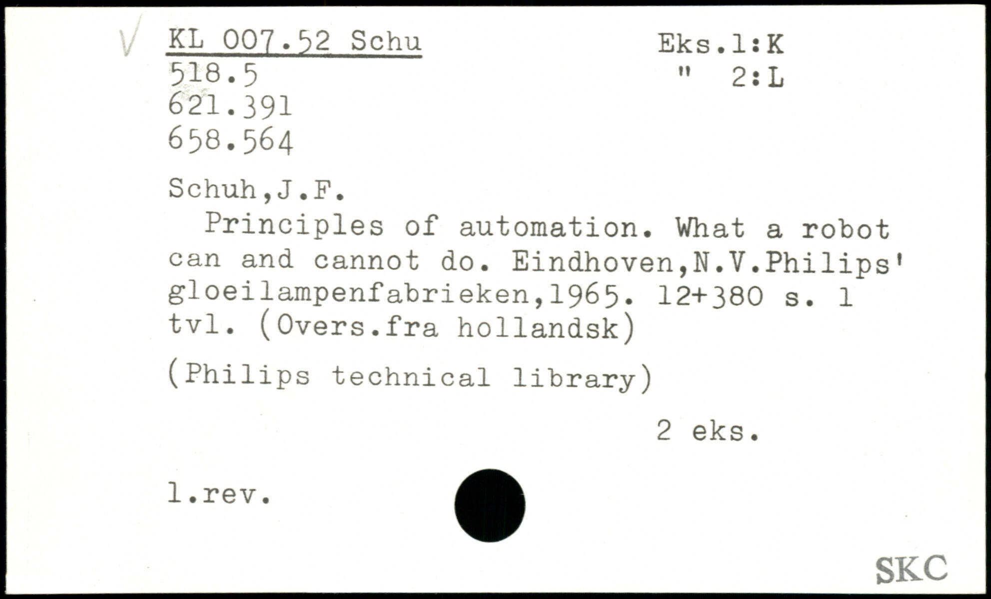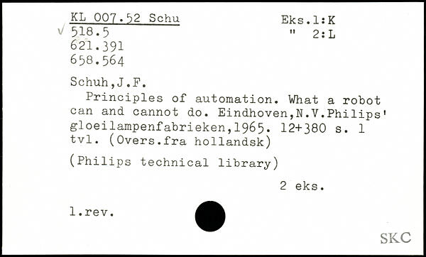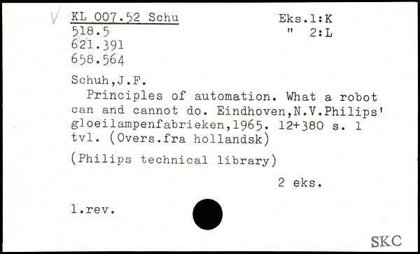 Principles of automation. What a robot can and cannot do. Eindhoven,N.V.Phi lips’ gloeilampenfabrieken,1965.