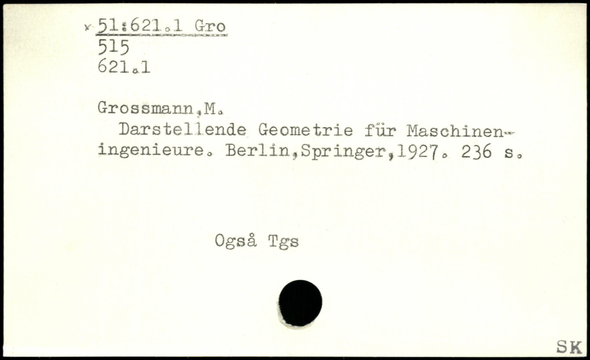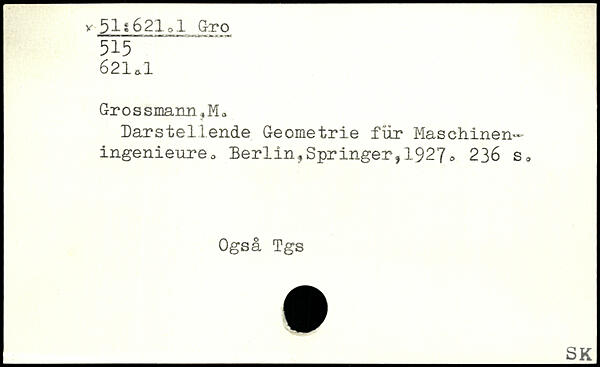 Darstellende Geometrie für Maschineningenieure, Berlin,Springer,1927, 236 s. Også Tgs