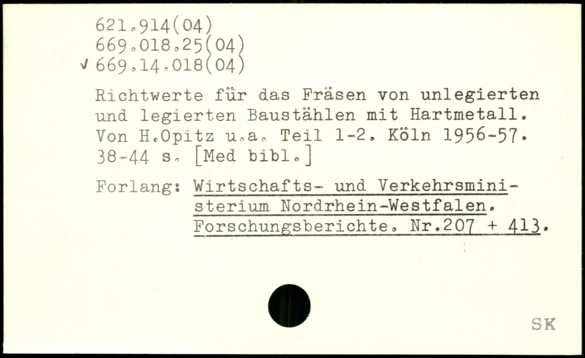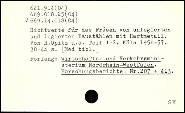 Richtwerte für das Fräsen von unlegierten und legierten Baustählen mit Hartmetall. Von H.Opitz u,a, Teil 1-2