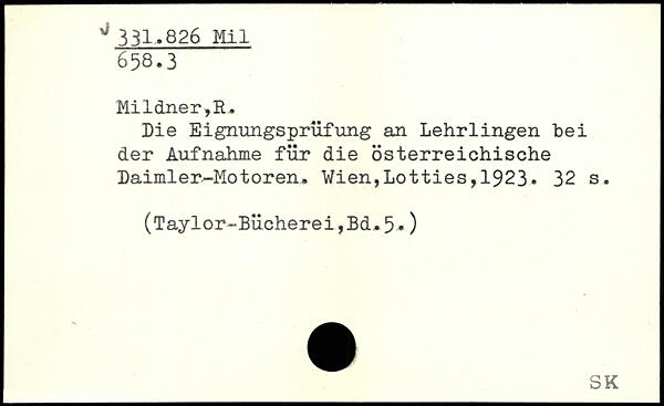 Die Eignungsprüfung an Lehrlingen hei der Aufnahme für die österreichische Daimler-Motoren.